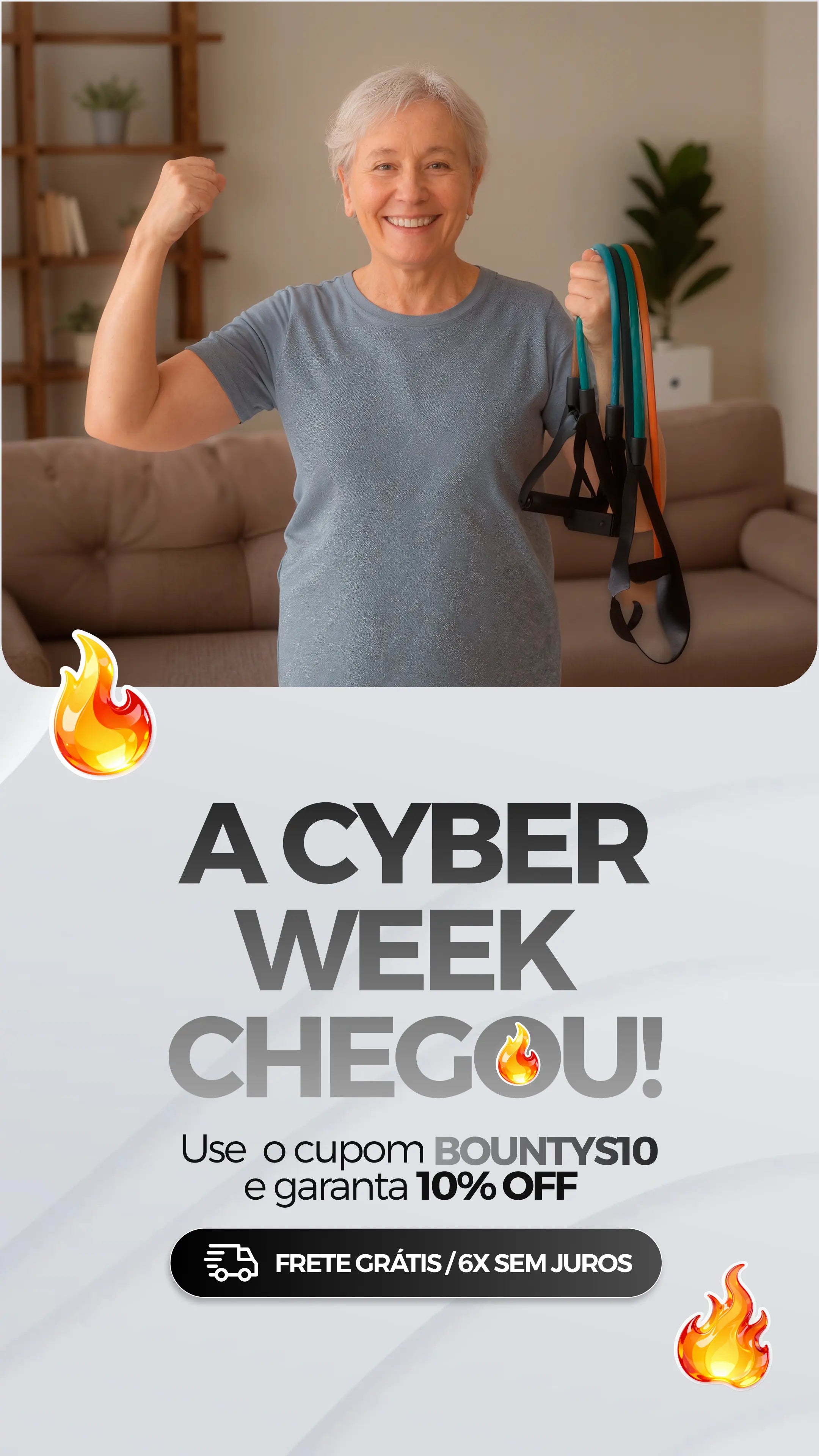 Na Bountys, acreditamos que cuidar da saúde após os 50 pode (e deve!) ser simples, prático e prazeroso. Por isso, desenvolvemos uma linha de acessórios de treino pensada especialmente para quem busca mais qualidade de vida, autonomia e bem-estar sem sair de casa.